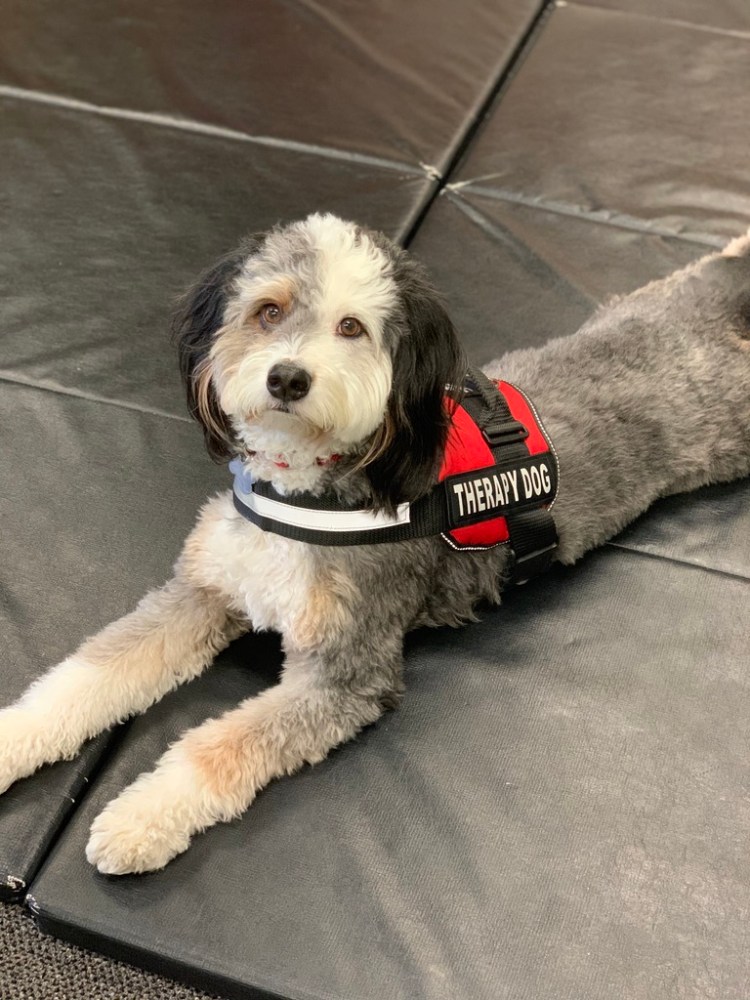 Kylo is a three-year-old male miniature bernedoodle, and he weighs ~40 pounds. He is American Kennel Club Canine Good Citizen (AKC CGC) certified, a certified Emotional Support Animal (ESA), as well as a certified therapy dog through The Lincolnshire Animal Hospital Pet Therapy Group (LAHPTG). He is hypoallergenic and has a very gentle demeanor. For more information on AAT or Kylo, connect with me below.