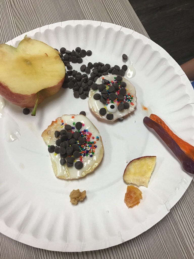 Fall brings along one of my favorite activities – apple picking! What better way to enjoy the season than with a delicious apple snack! Our groups gave this a go, as well as our kids working on expanding their diet through feeding therapy.